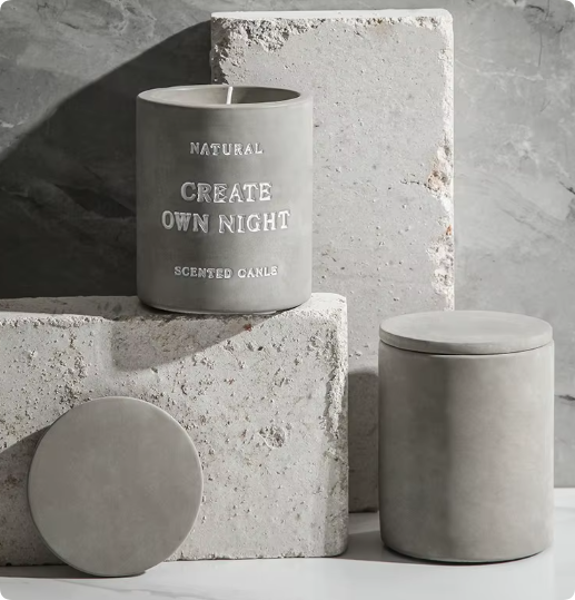 Concrete is a newer material for candle jars and is gaining popularity due to its rugged, industrial look. Concrete jars provide excellent heat insulation and can be molded into various shapes. They are perfect for earthy, rustic, or urban-themed candles. However, concrete jars are quite heavy, and their rough texture may not appeal to everyone.