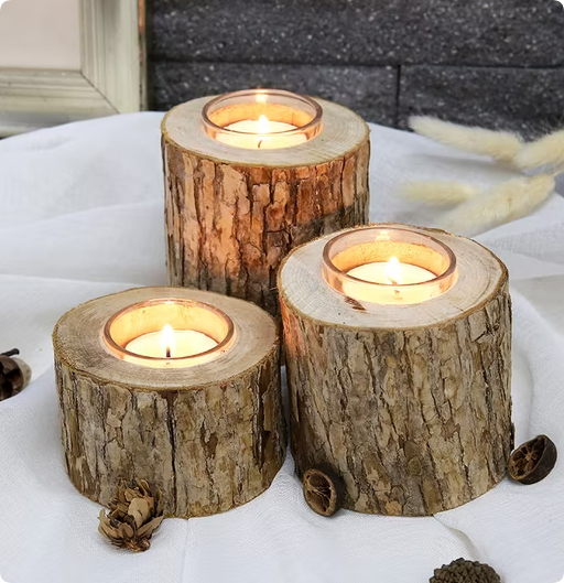 - Wood jars: Perfect for eco-friendly, sustainable candles with earthy or woodsy scents. Best with soy or beeswax.